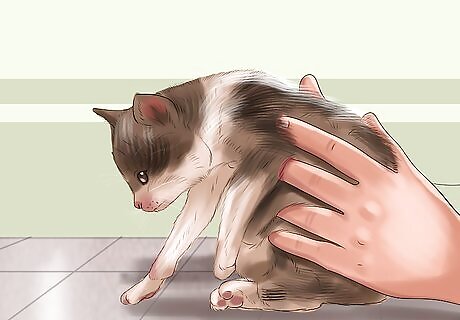 Move the cat to a cooler area. If you suspect that your cat has heatstroke or heat exhaustion, you should try to lower the cat’s temperature. Immediately take your pet to a cool area. This might be inside in a cool house or car or in the shade. Remove the cat from the heat source or the sun. If you can, try to get air flowing onto the cat with a fan or an air conditioning duct.