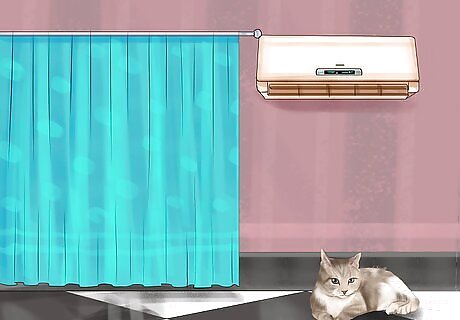 Keep the house cool. If your cat lives indoors, you should make sure your cat is able to get to a cool area inside the house. Close blinds and curtains during the day to help reduce the heat in the house. Use air conditioning or a fan to keep cool air circulating. Never leave your cat in a hot room, such as an upstairs room with limited air flow, a hot attic, or a sunroom.