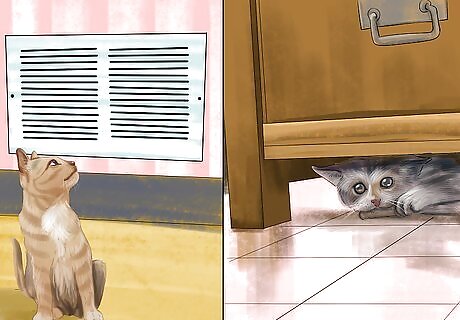 Check for restless behavior. If your cat is starting to suffer from heatstroke, they may start to act restless. This is because they are trying to find a cool spot to lay down. Watch your cat to see if they are moving around the house, unable to find a spot to settle. Your cat may try to find places by vents, under furniture, or in the shade.