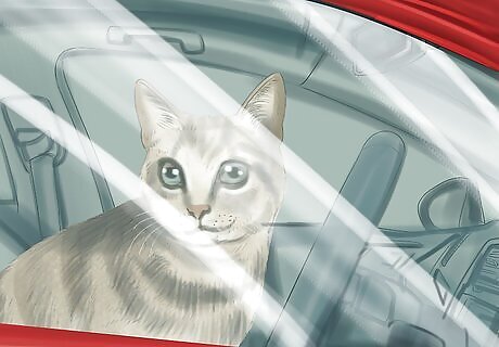 Avoid leaving the cat in a hot car. One way to prevent heatstroke in a cat is to never leave them in a car. This is true during the summer or winter. A closed car in winter months can get too warm for a cat. If you will have to leave your cat in a car, leave it at home instead. If you are travelling with a cat in your vehicle, make sure it is cool inside. Make sure there is plenty of air moving and your cat is not in direct sunlight the entire time.