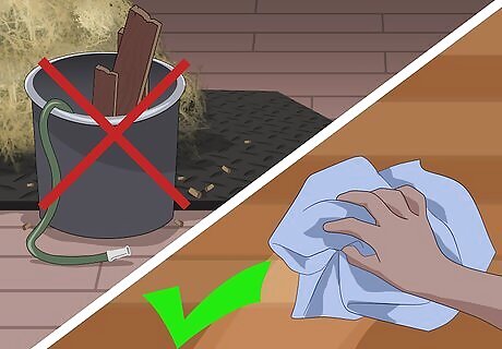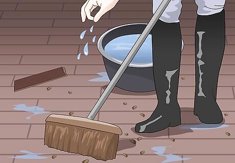Sweep the floor. Sweeping a dry floor will put dust and other particles into the air. Sprinkle the floor with water before sweeping. Do not use a leaf blower to clean the floors, since it could blow a lot of dust into the air. Do not sweep the floor frequently.