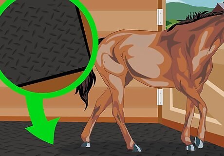 Use low-dust bedding in your horse’s stall. In addition to ventilation, low-dust bedding will help keep allergens out of the air. Chopped paper and chopped cardboard are good low-dust beddings for horse stalls. Do not use straw bedding—it is very high in dust. Rubber mats are another good bedding choice. Put just enough bedding in the stall on top of the rubber mat to absorb urine. If you have more than one horse, place low-dust bedding in all of the stalls. Horses need much less bedding than most people believe. Reducing the amount of bedding also reduces the dust content circulating in the stall.