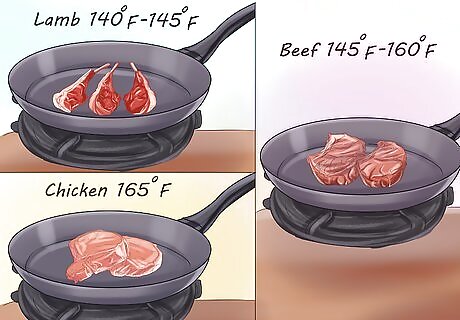 Cook your meat thoroughly. One way to contract toxoplasmosis is eating meat that's not fully cooked. Pork, beef, and lamb are the most likely to carry this parasite. Pork should be cooked to an internal temperature of 145 degrees Fahrenheit. If you are reheating ham or other cooked meats, you should let it reach a temperature of 140 degrees Fahrenheit. Cook beef and lamb to an internal temperature of 145 degrees Fahrenheit. If it's ground, cook it to 160 degrees Fahrenheit. Cook chicken to 165 degrees, no matter what type. Allow whole cuts of meat to rest before cutting, as that helps kill the parasite.