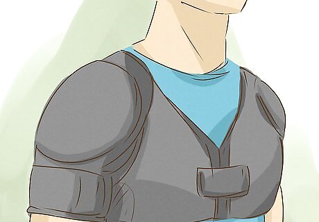 Wear protective shoulder pads and other protective gear for sports. One of the main causes of shoulder dislocations is traumatic injury. These types of injuries often happen in sports, so wearing protective gear, particularly on and near your shoulders, can help protect you against a shoulder dislocation. When putting on your gear, make sure that it fits you correctly, and that you are putting it on properly. If you don't know how, ask someone, or do a quick internet search to find out more.