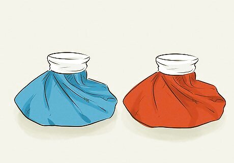 Use ice and heat. For the first couple of days, it's recommended that you use ice on your shoulder to reduce inflammation and pain. Use a bag of peas or ice wrapped in a towel for 20 to 30 minutes every few hours. After 2-3 days, when the swelling is reduced and the pain has improved, try heat. Use a heating pad or hot packs for 20 minutes at a time.