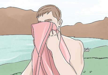 Dry yourself with a towel before the water evaporates. Parasites hide in the water droplets left on your body after you exit the water. When they evaporate, the parasites have a path into your skin. Wipe away all water droplets immediately after exiting the water to prevent this. Wipe harder than you typically would. Just patting yourself dry could leave some parasites behind. Instead, use a wiping motion to push the parasites off your skin.