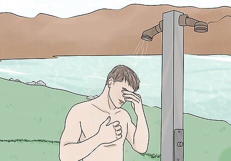 Rinse yourself with clean water after swimming. This washes any remaining parasites off your body so they can’t cause swimmer’s itch. The best option would be taking a full shower after swimming to clean yourself fully. If you’re unable to take a full shower, use the rinsing stations that are usually available near swimming areas. Run water over all the areas that your bathing suit doesn’t cover. Dry yourself by wiping your skin firmly with a towel to push off any organisms that still remain on your skin.