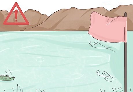 Avoid swimming if the wind is blowing towards the shore. This pushes more wildlife, including the parasites that cause swimmer’s itch, towards the shore where people are swimming. If there is a strong wind blowing towards the shore, consider skipping your swim for a few hours until the wind dies down. Heavy waves also bring parasites towards the shore. Look for calmer water.