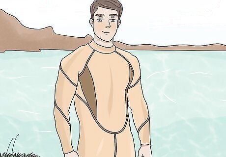 Consider wearing a wetsuit to swim. Swimmer’s itch usually only affects exposed skin. Areas covered by bathing suits prevent the parasites from reaching your skin. If an area is prone to swimmer’s itch or you aren’t sure, consider wearing a full-body wetsuit. This covers your entire body except for your head and feet.