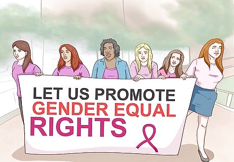 Attend marches or rallies. Look for events that are being held near you. There might be a rally about women’s healthcare or about equal pay. Go to a march or rally and take some friends with you! This is a great way to show your support for gender equality.