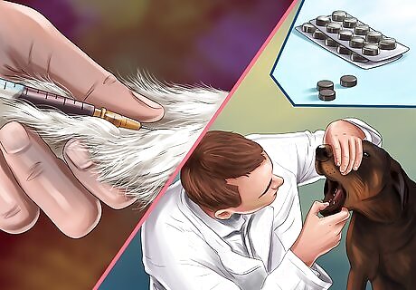 Take your dog in for treatment. Even if your dog does not have symptoms right away, it's important to have your dog seen by a veterinarian to be safe. Bring your dog, and whatever piece of the mushroom you could get your hands on, into your veterinary office. If your veterinary office is closed, you should take your dog to an emergency veterinary hospital. You may have a vet bill because your dog ate a non-toxic mushroom, but on the other hand it could save your dog's life. If your dog has no symptoms, your veterinarian may still make it throw up, give it charcoal pills, and may run some blood tests to look for toxins. If it is confirmed that your dog has eaten a toxic mushroom, your veterinarian will give it appropriate treatment for the type of toxin infested. This may include anything from surgical decontamination to simply supportive care until symptoms subside.