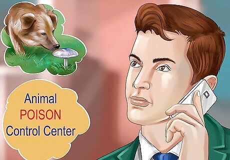 Call your veterinarian, an emergency pet hospital, or an animal poison control center. If your dog eats a wild mushroom, get professional advice on how to proceed. They will advise you what you should do. Usually, if you are unsure what type of mushroom your dog ingested, you will be advised to bring your dog and a specimen of the mushroom in for evaluation. If your veterinary office is open, call them, especially if the office is close by. If there is a veterinary hospital close by, you may want to take your dog there instead of your normal clinic, if that is far away. If you have no veterinary services close by, then calling the animal poison control center will be your best bet.