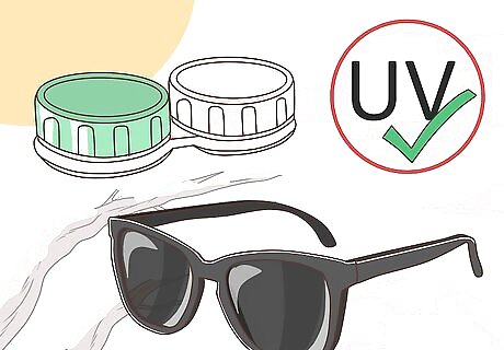 Get added protection. Some contacts now offer UV protection. Certain eyeglasses, likewise, can block UV rays and/or transition naturally to a darker lens when in the presence of bright sunlight. If you wear contacts or glasses, talk to your optometrist about getting extra UV protection in your daily eyewear. For instance, you might say, “I am interested in getting some added UV protection for my eyewear. Can you help?”