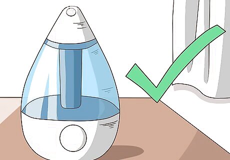 Use a humidifier. A humidifier is a small device used to add moisture to the air. If your eyes are dry from exposure to cold winter winds or from spending too much time next to a warm furnace, you should place a humidifier in your home and office. The humidifier you select should be up to the task. For small spaces (up to 300 square feet) and medium spaces (300-500 square feet), use a small portable humidifier. For larger spaces, you’ll need a larger humidifier. When shopping for humidifiers, check the information label to discover what size space they were intended for. Perform cleaning and maintenance on your humidifier as directed by manufacturer directions.