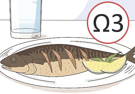 Get more omega-3. Omega-3 fatty acid is an essential nutrient for good health, and low levels of omega-3 have been linked to dry eye syndrome. In the winter, it becomes even more important because it helps your body produce tears that keep your eyes hydrated. Fish is the most common source of omega-3, and is available in tuna, sardines, trout, salmon, mackerel, and herring. You can also get it in: algae flax seed and flax oil omega-3 capsules walnuts pecans