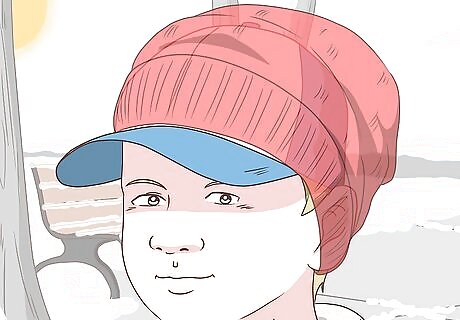 Wear hats. A hat with a wide brim can help keep the sun out of your eyes. In fair weather, you might wear a baseball cap or a variation with a wide brim. In cooler weather, you could put a baseball cap on, then place a warmer wool or knitted cap on over it to keep your head and ears warm.