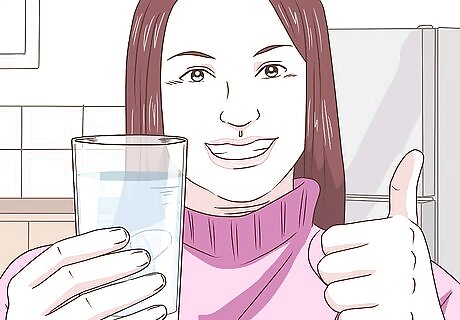 Stay hydrated. One of the best ways to keep your eyes from getting dry during winter is to drink water and stay hydrated. If your eyes continue to dry out in the cold winter weather, increase your liquid consumption. Hot soup is a great way to increase your liquid consumption and also stay warm. Avoid drinking sweet juices, soda, and alcohol. To stay hydrated, drink at least nine eight-ounce glasses of fluid each day if you are a woman and at least 13 eight-ounce glasses if you are a man.