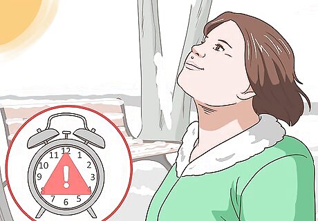 Avoid spending much time outside on snowy days. When snow covers the ground, it reflects almost 80% of UV radiation. This radiation bounces right back into your eye, causing the same damage it would if it entered your eye directly. To avoid this added UV exposure, limit the time you spend outdoors on snowy days. For instance, instead of spending all day outdoors when snow covers the ground, limit your outdoors time to no more than a few hours each day.