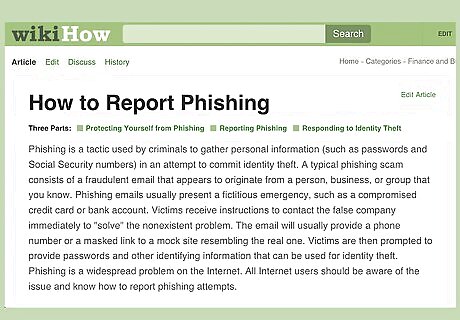 Be wary of unsolicited emails. “Phishing” is a technique scammers use to gain access to your computer and your accounts. Often scammers embed a link into a spam email. When you click on it, they can install malware onto your computer and gain personal information. Scammers also use pop-ups that look like those from a legitimate business or bank. Always take a moment to verify that you are at the right website before clicking links. For more information, see Report Phishing.