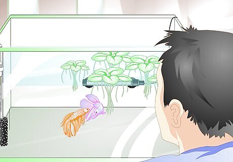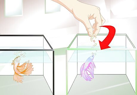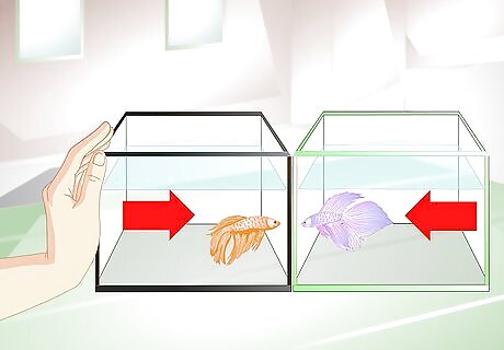 Introduce the mating pair. Once you are sure each betta is healthy and well fed, you can introduce the pair. It can take a few days for the bettas to get used to one another in separate tanks, but this may help prevent injuries and poor quality eggs. Start introducing the pair by placing their tanks close to one another for a couple of days.