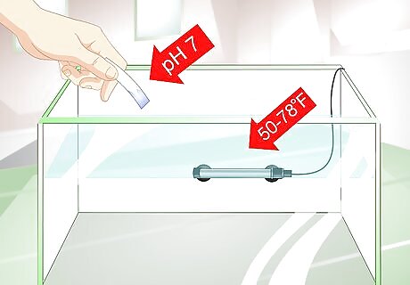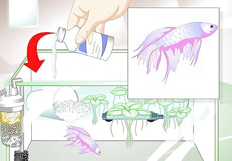 Check the water quality. Maintaining water quality is essential to keeping your fish happy and healthy. It may also help provide the best environment for your bettas to mate. You can buy a fish tank water testing kit at most pet stores. These tests can help you identify any problems with the water, such as high ammonia. Test the temperature to make sure it is between 50 and 78 degrees Fahrenheit. Test the water for acidity. Most fish thrive at a neutral pH level of approximately 7. If the water is too acidic, you can buy a chemical neutralizer at most pet stores. Test for oxygenation to help ensure that the saturation exceeds 70%.