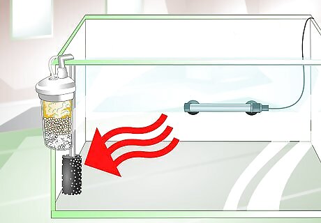 Filter the water gently. Fish create a lot of waste and an important component of maintaining water quality for a protective environment is filtering it. This can not only help keep your bettas healthy, but may also aid the mating process and help the eggs and fry survive. Make sure the filter is gentle. Too much movement of the water can disturb bettas and their fry because their natural habitat has still water. Clean or replace the charcoal filter once a month.