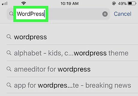 Type WordPress into the search bar. Tap the search bar at the top of your screen, and enter the app's name here.