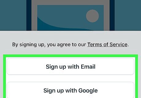 Select a sign-up method. You can use your email address to Sign up with Email, or your Google account to Sign up with Google. If you select the email option, you'll have to provide your email address and create a new password. With the Google option, you can select one of your saved Google accounts and automatically log in.