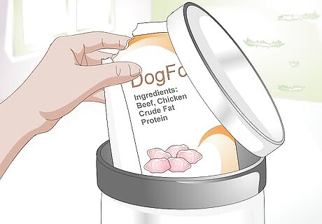 Figure out what foods need to be eliminated. The purpose of a limited ingredient diet is to eliminate allergens from your dog’s diet. Look at the ingredients of your dog's current food and any food that it has previously eaten. All of the ingredients in these foods need to be avoided. If you no longer have the packaging of a food you previously fed to your dog, you can look the ingredients up online. Most large dog food companies have their ingredient lists posted online.