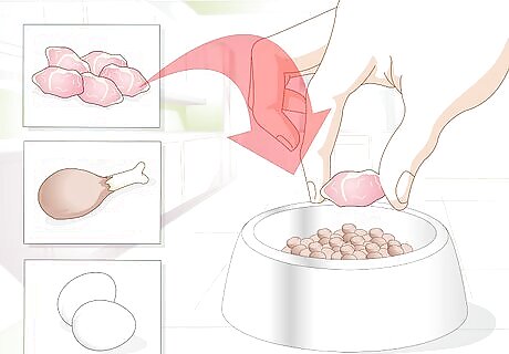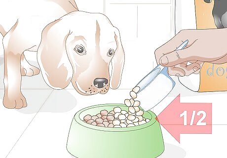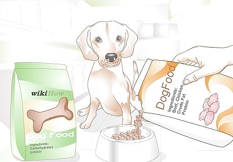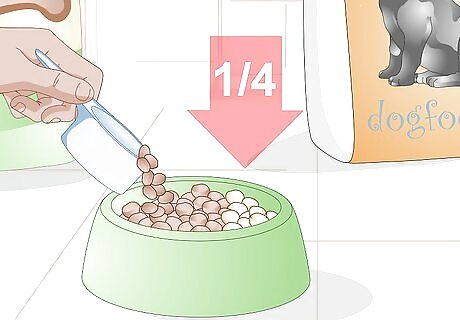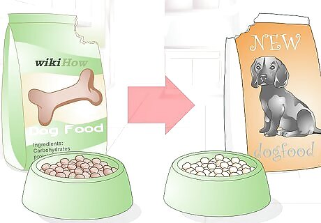 Increase the percentage of new food over the course of a week. After a couple days of a one to three ratio of new food to old food, increase the amount of new food so that you are feeding your dog half and half new and old food. Feed this amount for several days. Then increase the amount of new food for a few day once again, so that you are feeding three parts new food and one part old food. Finally, you can switch entirely to the new food after a week of gradual introduction.