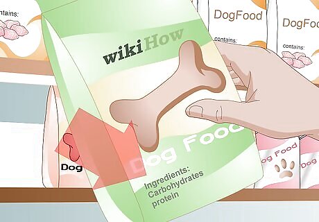 Pick out a limited ingredient food. Go to your local pet store and look at all of the limited ingredient diet options. Most limited ingredient diets consist of only two ingredients, a protein and a carbohydrate. These are usually unusual proteins and carbohydrates, so it is likely that your dog has not eaten them before. In addition, most limited ingredient diets are grain free, keeping out common allergens including wheat, corn, and soy. Some common proteins in limited ingredient diets include duck, turkey, lamb,