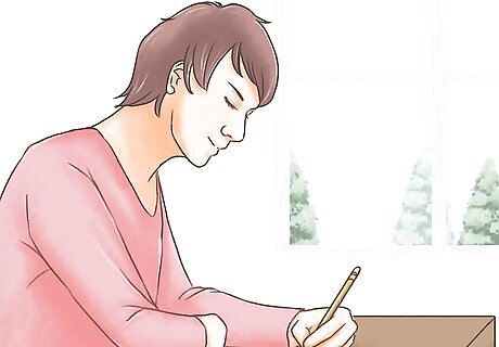 Help your teen express feelings. Introverted teens may have trouble expressing their feelings or talking about what they are thinking. Because they focus on their inner self and keep things internalized, they may have trouble figuring out how to communicate their feelings. Help your child learn how to express their feelings. Create an environment where they feel comfortable sharing their feelings. Don’t make them feel embarrassed or wrong for their feelings. If your teen doesn’t want to share feelings or ideas verbally with you, try getting them to express themselves in other ways. Get them to write in a journal, create art, or play music to express their feelings. You may also encourage individual sports, like boxing or martial arts, to help them release frustration.