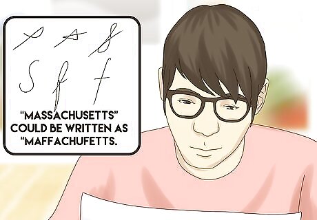 Read the letters “s” and “f” carefully. In English, the letter “s” was often written as a backward “f." In the middle of some words, you may see the modern-day symbol for “f” where an “s” should be. For example, the name “Massachusetts” could be written as “Maffachufetts.” Being mindful of this common character difference can help save a lot of time and patience when reading old handwriting.