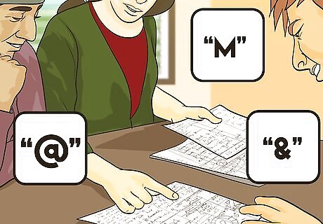 Look for symbols. Signs and symbols were often used to signify a certain word, and you will most likely run across one or two in your research. The symbol “@” can be used to replace the word “per.” If you come across “@ week,” for example, that will most likely mean “per week.” In English, a short, wavy line that appears over a letter or group of letters is called a tittle. This symbol indicates the exclusion of the letter “m” or “n” or the omission of the suffix “tion.” A very common symbol is “&,” commonly known as the ampersand, and is used to indicate the word “and.” Pay attention to this symbol as it frequently has personal variations and can change from author to author.