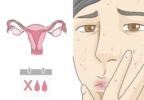 Look for symptoms of PCOS if you don’t have a diagnosis. You might suspect you have PCOS if your period is irregular, which is often the main symptom of PCOS. You’re more likely to have PCOS if you’re overweight, but anyone can have it. Talk to your doctor if you have the following symptoms of PCOS: Irregular or absent periods Excess facial or body hair Severe acne Hair loss around your temples or the crown of your head Ovarian cysts, which may feel painful