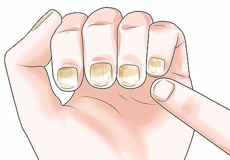 Examine your nails for signs of fungus. Nails that are yellow or brown, and that are cracked or chipped, are common among later-stage HIV patients. The nails become more susceptible to fungus, which the body is able to fight off under normal conditions.