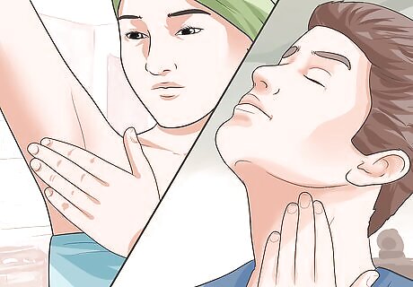 Check for swollen glands in the neck, armpits, or groin. The lymph nodes swell in reaction to bodily infections. This doesn't happen to everyone who has primary HIV, but among those who have symptoms, it's a common one. The lymph nodes in the neck tend to swell more than those in the armpits or groin with an HIV infection. Lymph nodes can swell as a result of many other types of infections, such as a cold or the flu, so further investigation is necessary to determine the cause.