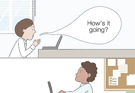 Check in one-on-one from time to time. Taking time to send an email or reach out over chat occasionally will let your remote workers know that you are thinking of them and concerned about their wellbeing. Check in regularly about work they are currently doing, but also drop a line sometimes just to say hello or ask how things are going. For example, you might reach out over instant messenger to say something like, “How are things going with the new project? Do you have any questions?” Make sure to chat about things that aren’t work-related, too. For instance, “Do you have any fun plans for the holidays?” or “How are the kids doing?”
