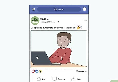Find ways to publicly recognize remote workers’ contributions. Remote workers can sometimes feel like their contributions are overlooked. Help them feel appreciated by giving them kudos on their good work in companywide emails or on your website. For example, you might highlight exceptional work by remote employees in your company newsletter or feature them in an online “recognition wall.” You could also do a weekly social media post highlighting different remote employees or discussing projects your remote workers are doing.