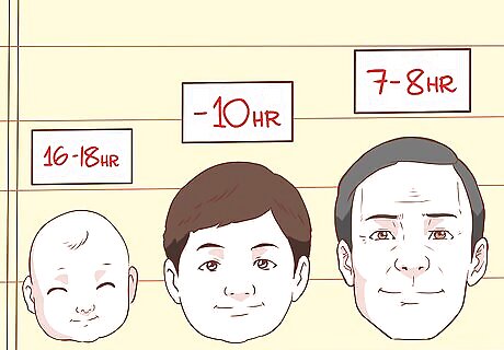 Get enough sleep for your age. There are a number of variables that can affect how much sleep you need each night and what is right for another person your age may not be right for you. That said, there are some general guidelines you can follow to establish a sleep pattern, then adjust it to suit your needs. People under thirteen years of age should get between ten and thirteen hours of sleep per night. Teenagers through seventeen years old should get eight to ten hours of sleep each night. Most adults need seven to nine hours of sleep to maintain their health and feel alert during the day.