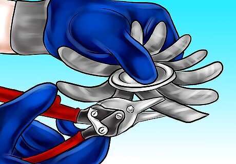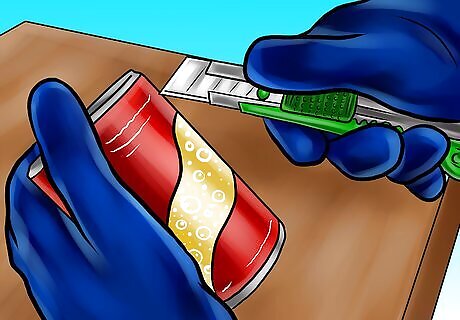Wear protective gear when cutting cans. For this project, and others listed in this article, you will cut soda cans and turn them into lovely garden ornaments. However, these garden ornaments can turn deadly if you are cut by the sharp edges of the can. Because of this, it is important to wear sturdy work gloves when you cut cans. You will also need heavy-soled shoes.
