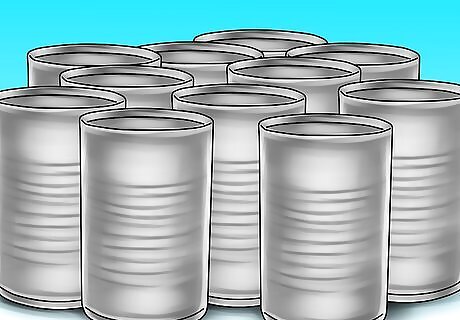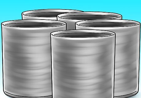 Gather empty tin cans. These can be food cans with their lids removed. The size of the can is up to you. Just remember to wear sturdy work gloves, as these cans have a tendency to be very sharp.