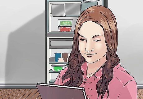 Make a list of the food you have. Write down the food you have in the refrigerator, freezer, and pantry. Make a special note of any foods that have to be used quickly. It can also be helpful to write down whether or not you have a lot of one or two foods. For example, you might make a note that you've got several dozen eggs that need to be used or only a small handful of blueberries that need to be eaten.