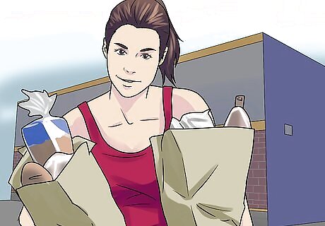 Make a grocery list and shop. Once you've made your meal plan, write down a list of the ingredients that you'll need to buy. Remember to write down the quantity of the things you need so you buy just what you need and no more. This is especially important if you'll be buying food from the bulk bins. Avoid shopping when hungry so that you don't make impulse buys. You can stay more focused at the grocery store by organizing your list by department. This way, you know exactly what you need from each area and won't buy unnecessary food. Never use or buy canned foods that are rusty, bent, dented, or bulging. These are signs of bacteria-growth.
