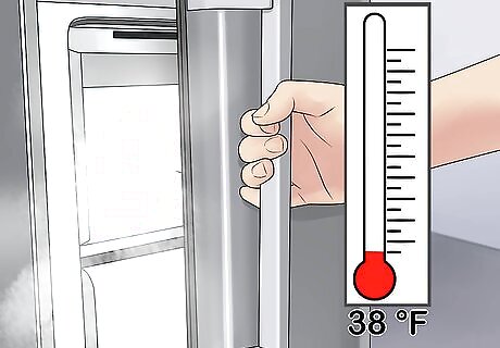 Use thermometers in your refrigerator and freezer. To prevent bacteria from growing on your food, set your freezer to 0 degrees Fahrenheit (-18 degrees Celsius). Your refrigerator should be no warmer than 38 degrees Fahrenheit (3 degrees Celsius). Since most refrigerators and freezers don't include an accurate way to adjust temperature, you need to put thermometers in your freezer and refrigerator. Try to be in the habit of checking the temperature inside the refrigerator and freezer every day. The sooner you catch rising temperatures, the sooner you can adjust the temperature and save the food. Replace the seal on a refrigerator if it is broken. You can buy the seal for a refrigerator from the factory, whoever makes the product or the refrigerator. Then you can watch a YouTube video and learn to change the seal.