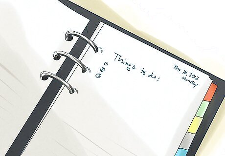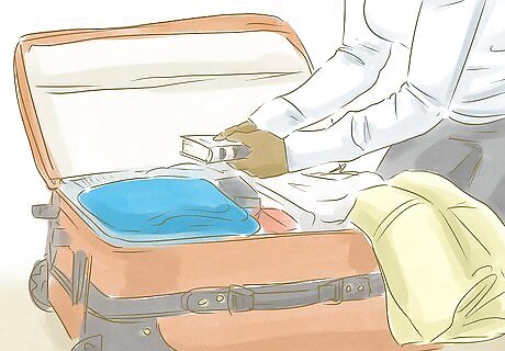 Write lists. You might think, “There’s no way I’ll forget that!” and yet, under stress, you may forget even the most basic things. Write a list of what needs to be bought, packed, accomplished, and arranged before you leave. Start well in advance so you don’t get stuck doing loads of laundry the day you leave. Let someone else look over the list to make sure that you haven't forgotten anything. Put reminders where you need them. For example, write a list of bathroom items you need and put it on your bathroom mirror so that you can collect all of the items at once. Put sticky notes onto necessary items you need to bring or put a list of things you need on the door.