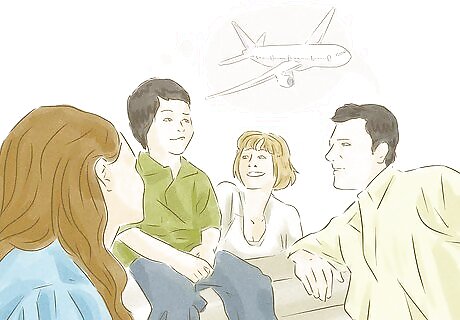 Give kids plenty of warning. If you’re going to visit family, let your kids know ahead of time. If your child fears change or has a difficult time adjusting to new people or places, give them plenty of time to prepare for the trip. Talk about who you will be seeing, what you’ll be doing, and what activities you can look forward to on your trip. Make a travel book for your child, letting them see pictures of who they are visiting and what activities they will be doing. Provide some blank pages for your child to use to draw or color. This can help build positive anticipation instead of worried or nervous dread. If flying, let your kids know that you will go through security. Let children over the age of 12 know they will need to take their jackets and shoes off. Children under 12 can leave on light jackets, head coverings, and shoes. You can even make a game of practicing going through security, complete with pretend "tickets" and suitcases.