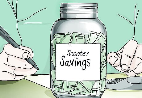 Save up for a scooter. Motorized scooters are useful for covering distances that are too far to walk but not long enough to warrant taking a car or bus. Many gas-powered scooters get up to 100 miles per gallon, making them one of the most fuel-efficient vehicles on the road if you’re not in a huge hurry. What’s more, you’re practically guaranteed to find parking wherever you go, since they take up so little space. It only costs about $10 to top off a gas-powered scooter, which is roughly a quarter as much as the average car or truck. Ride responsibly—always wear a helmet and keep an eye out for other motorists.