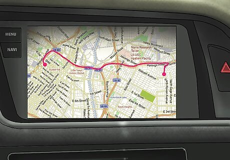 Plan your trips more efficiently. Before hitting the road, take a few extra minutes to figure out how to get where you’re going in the least amount of time. As much as possible, avoid construction zones and areas where traffic tends to get congested during prime commuting hours. The longer you’re behind the wheel, the more fuel you’ll burn, and the more wear your car will collect. Depending on where you live, streamlining your navigation could mean taking a straight shot down the highway or interstate, or it could mean familiarizing yourself with seldom-used back roads. Use your smartphone’s GPS anytime you’re driving somewhere new. Most satellite GPS systems are programmed to automatically select the most direct known course.