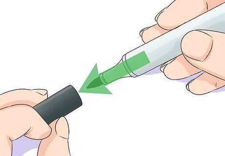 Protect your hands, clothes, and work surface. If you overfill the marker, it may leak out of the other end. To prevent the ink from staining your bed, desk, or floor, cover the area with plastic sheeting or several layers of newspaper. You may also want to roll up your sleeves and wear gloves so the ink doesn’t stain your hands or clothes.